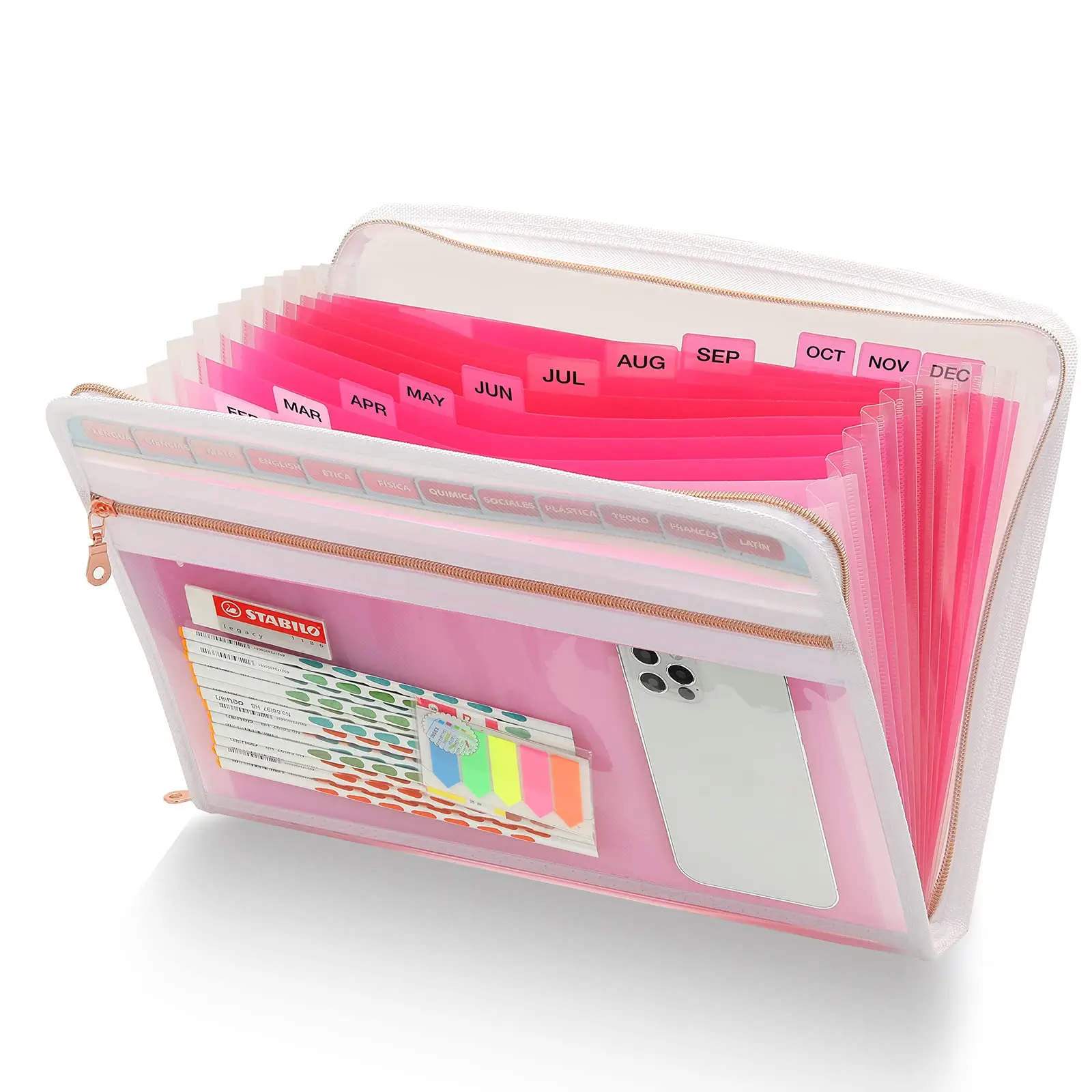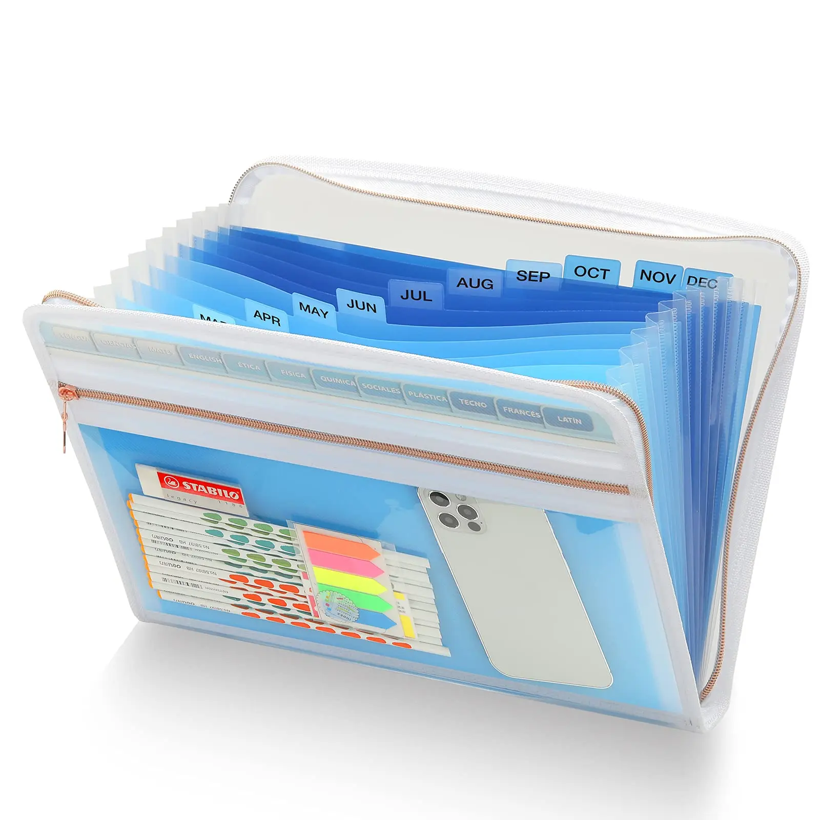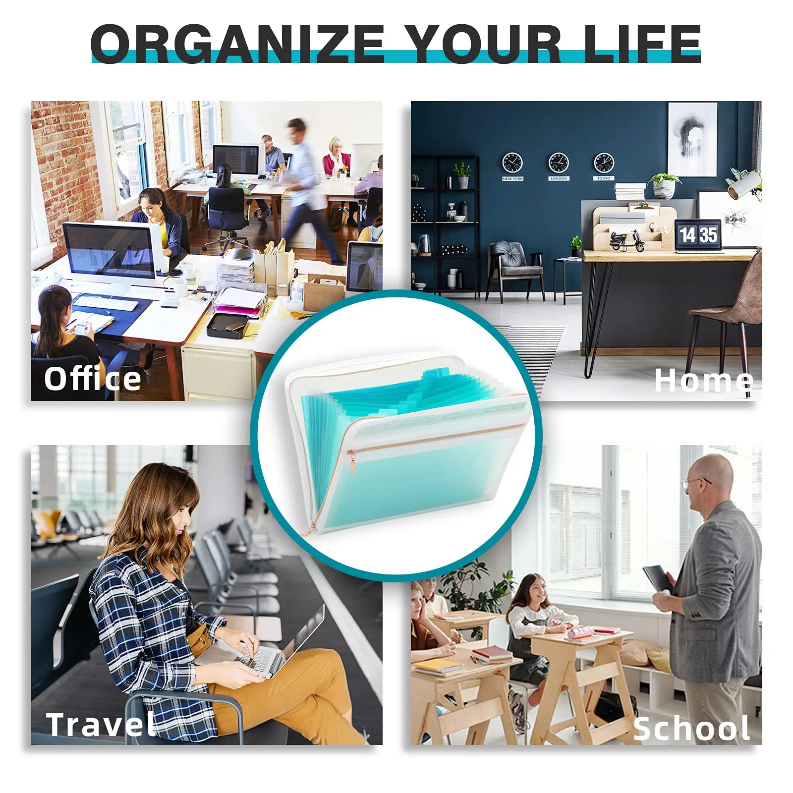 13 Pocket Expanding File Folder Organizer with Front Clear Pouch,Accordion File Organizer with Zipper Closure,Papers Letter Size