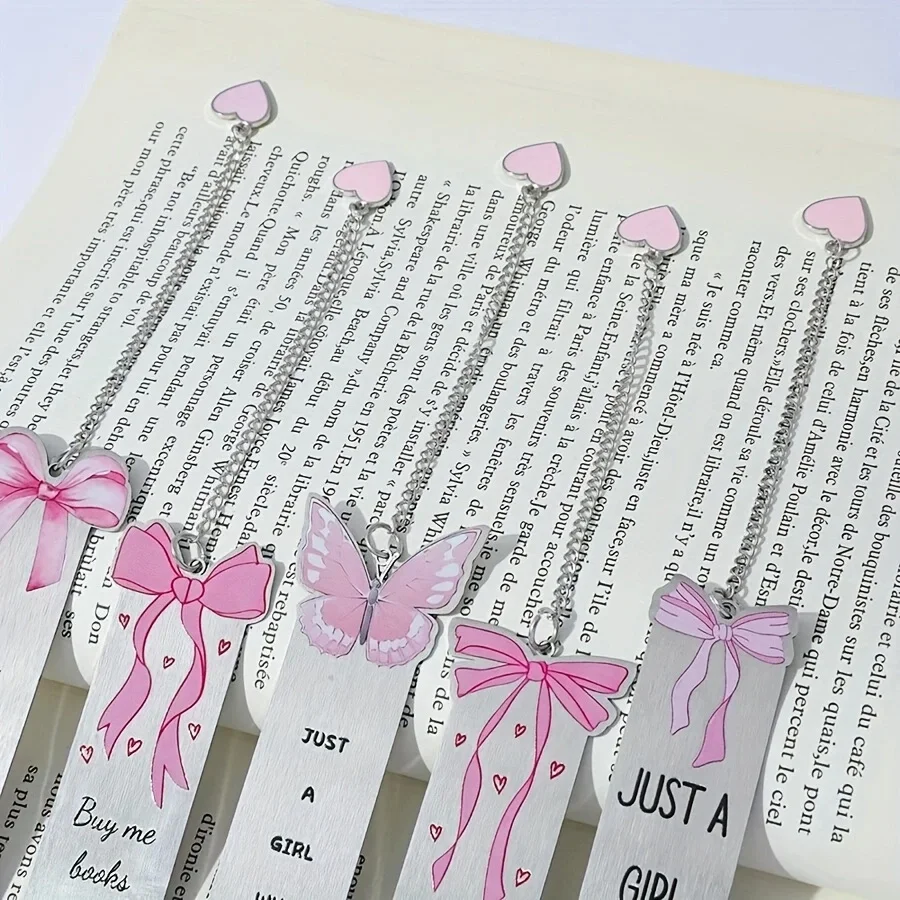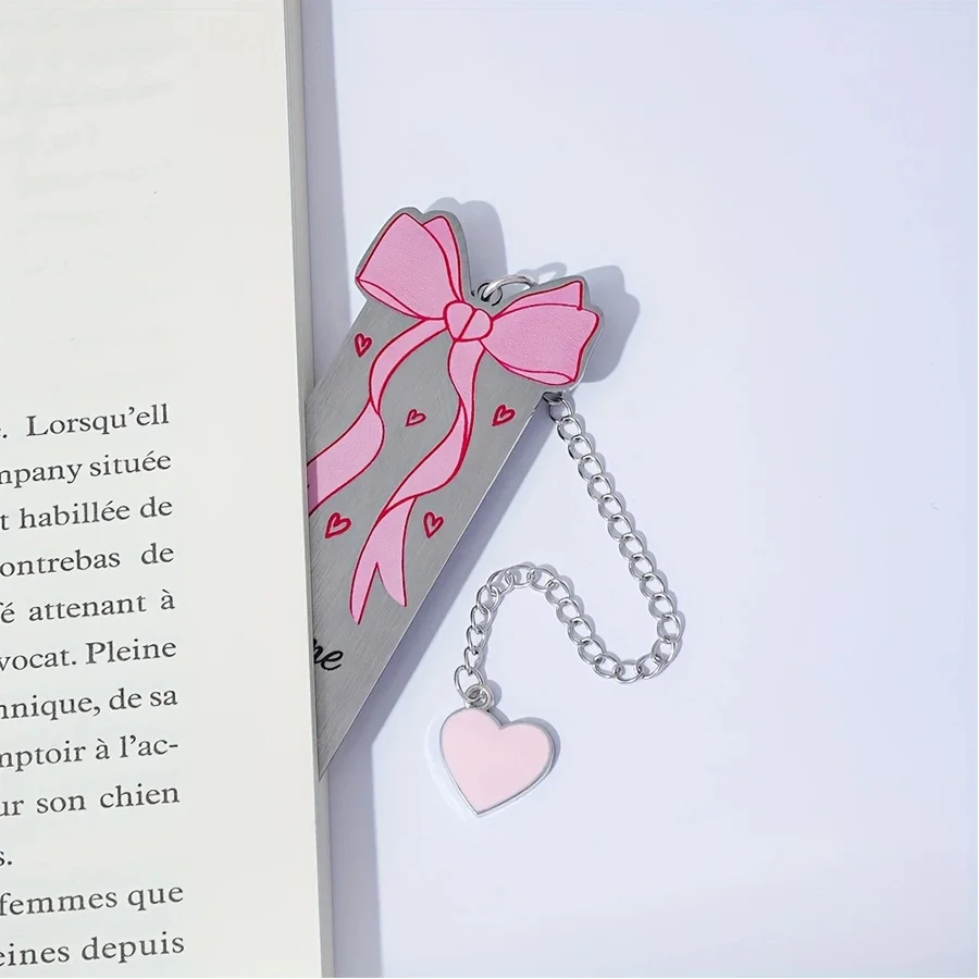 1PC Cute Pink Bow Metal Bookmarks Book Lovers Reading Accessories Valentine's Day Gifts for Wives Women Readers Book Decorations