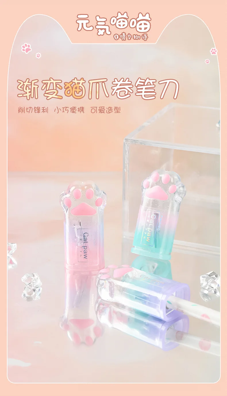 1pcs Gradient colored cat paw pencil sharpener cute cat shaped student office stationery pencil sharpener