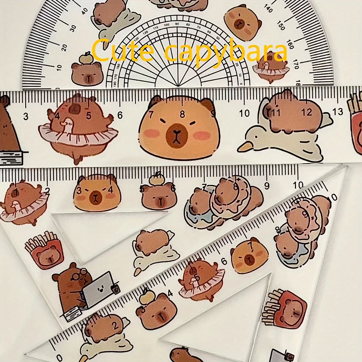 plus 4pcs Plastic Transparent Capybara Ruler, A Set Of Ruler Test Drawing Four-piece Ruler, Plastic Transparent Ruler Triangle Board