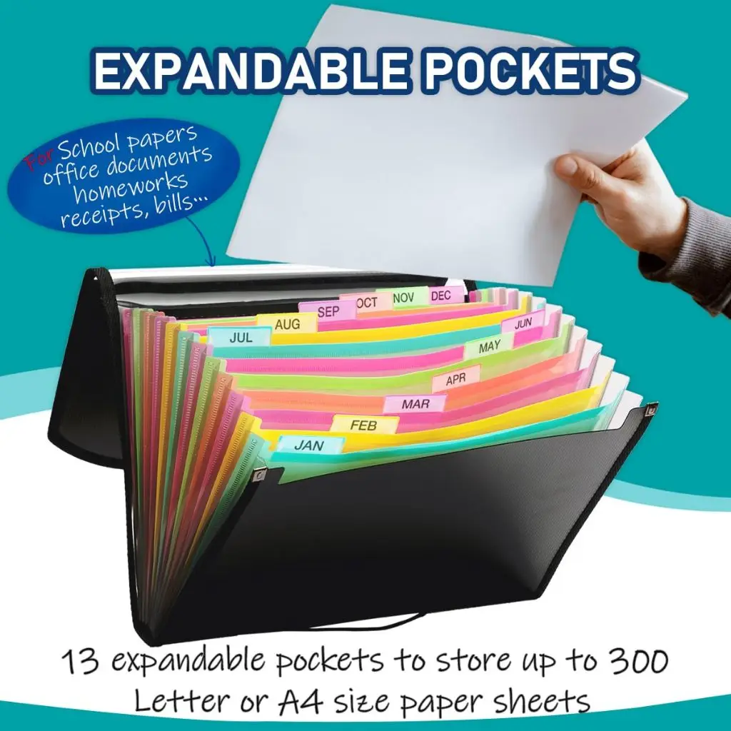 File Folders 13 Pockets, Expanding File Folders Organizer, Expandable Binder Document Organizer File Folder with Dividers Tabs